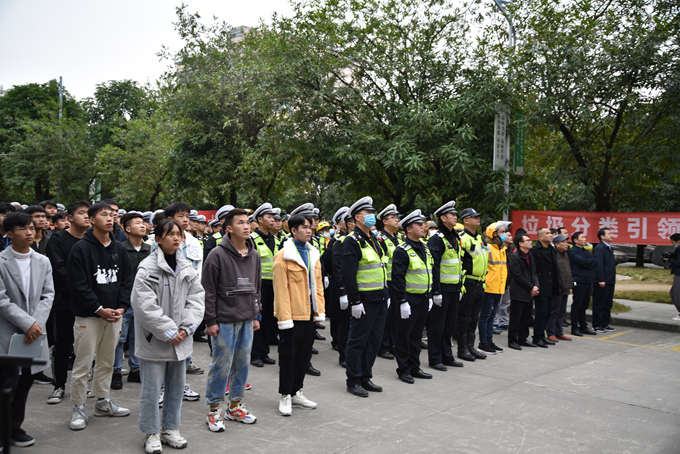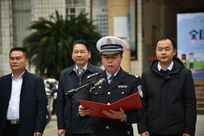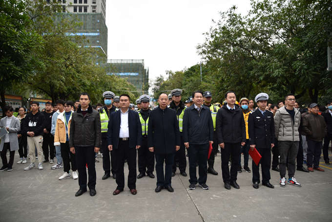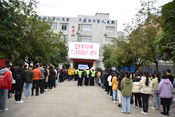 12月2日,是第9个“122全国交通安全日”,由河池市公安局交通警察支队联合我院举办的“知危险•会避险、安全文明出行 ”主题活动在学院一号教学楼前举行。学院院长、河池市职业教育中心学校校长黄绍光,河池市公安局交通警察支队支队长蓝江、副支队长白建凌,河池市教育局、河池市司法局、河池市交通运输局、河池市应急管理局,共青团河池市委员会,河池市网信办,河池市文明办等单位相关领导出席活动,公安局交通警察支队民警约70人及我院师生约100多人参加活动。